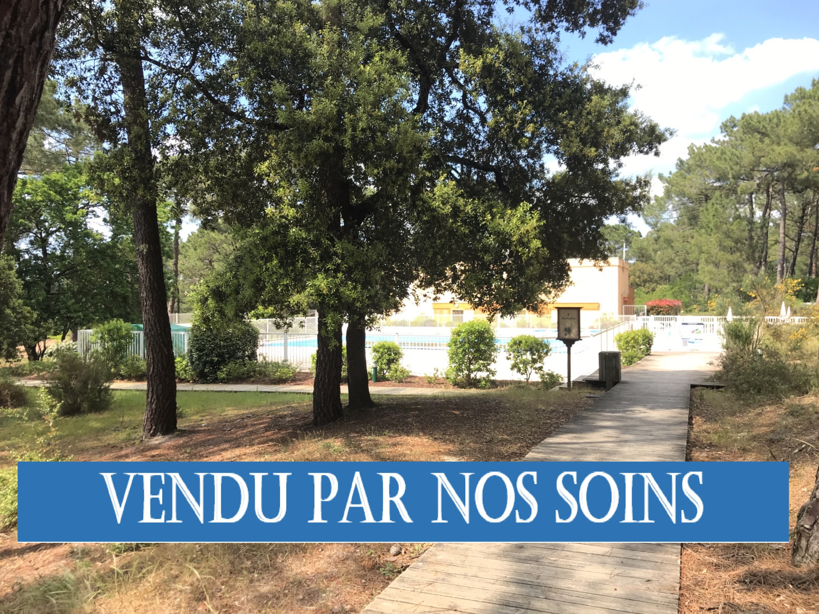 VENDU PAR NOS SOINS – Résidence les grands pins. Entre lac et océan, appartement de type 2 d'environ 30 m² situé au rez-de-chaussée avec loggia. Il se compose d'une entrée avec placard, chambre, salle de bains avec WC et séjour avec kitchenette. A environ 1 km du lac et 3 kms de l'océan, accessible par piste cyclable