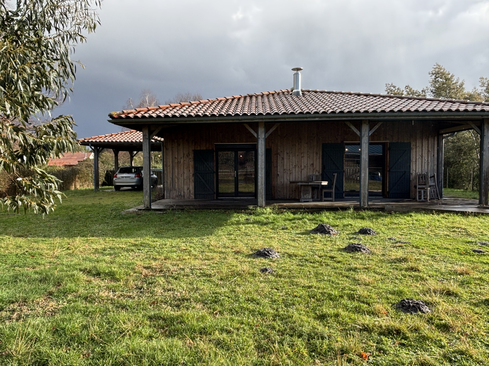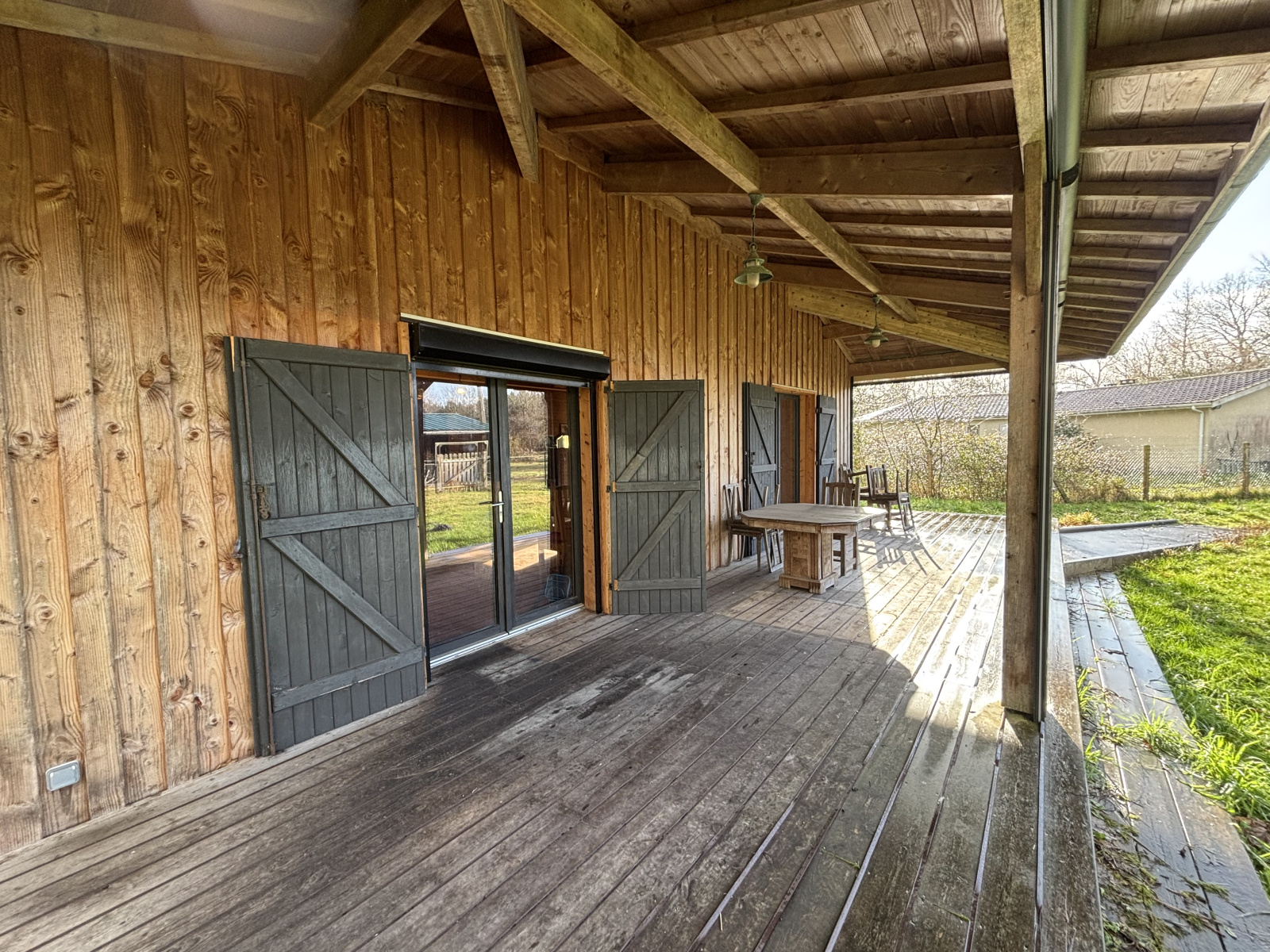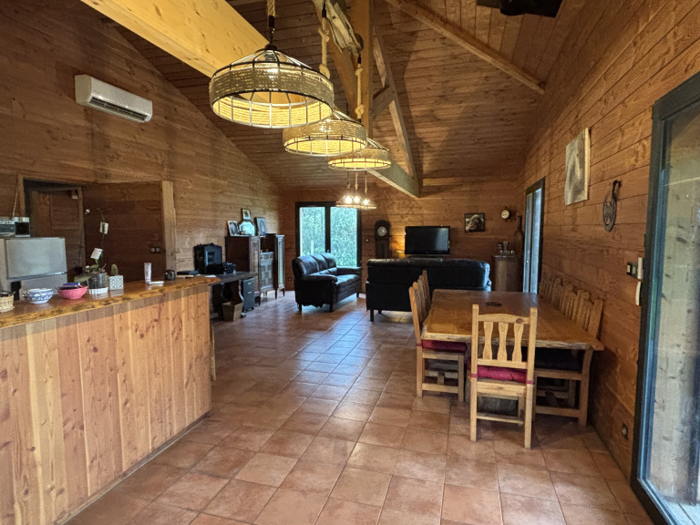 Rare sur secteur ! Maison de plain-pied en ossature bois, construite en 2015, d'une surface habitable d' environ 120 m² à proximté du bourg dans un environnement forestier. Elle se compose d’une entrée avec buanderie, d’un WC séparé, d’un vaste séjour avec cuisine ouverte, d’une chambre avec salle d’eau-wc, ainsi que d’une grande chambre avec salle de bain. À l’extérieur, vous profiterez de deux terrasses couvertes : une terrasse bois à l’avant, équipée de rideaux à fermeture automatique, et une seconde terrasse sur dalle, exposée Est. Non attenant, un bâtiment agricole en bois d’environ 140 m², divisé en plusieurs espaces, vient compléter l’ensemble et ouvre de nombreuses possibilités d’aménagement (stockage, atelier, abris, box...). Implantée sur plus de 2 hectares de terrain entièrement clôturé, la propriété offre un cadre idéal pour un projet équestre, mais également un espace parfaitement adapté à une vie de famille au calme, aux loisirs de plein air ou à un projet de vie proche de la nature. Votre agent immobilier local : Aurélie PHOENIX 06.38.67.72.82 - MAXIME PHOENIX IMMOBILIER agences locales et indépendantes situées à Carcans et Maubuisson. Honoraires à la charge de l'acquéreur : 5,13 % TTC (390 000 € hors honoraires).